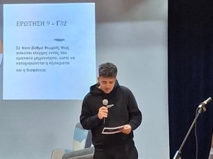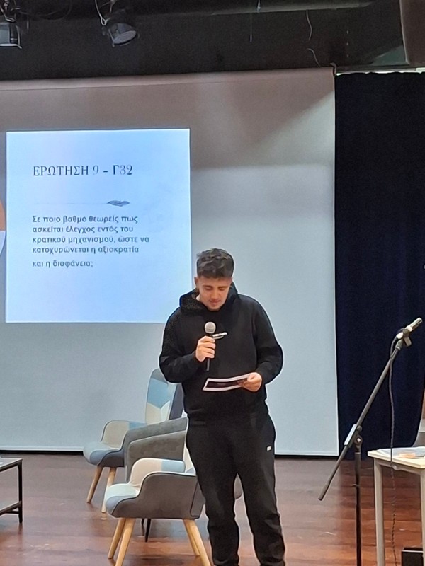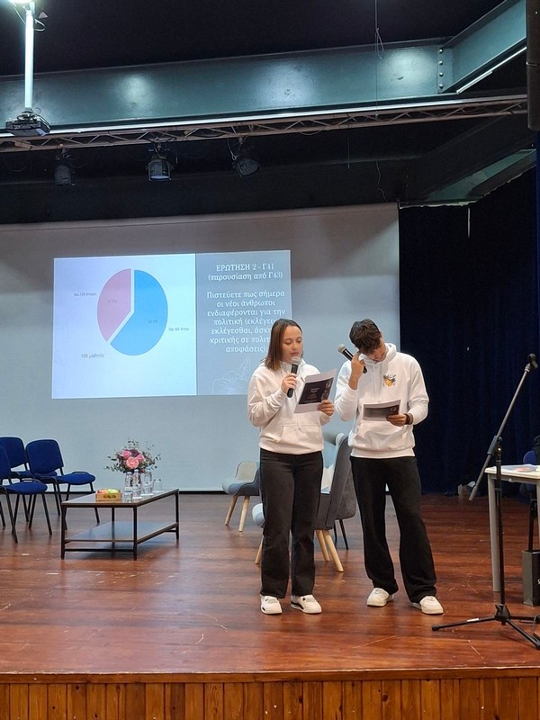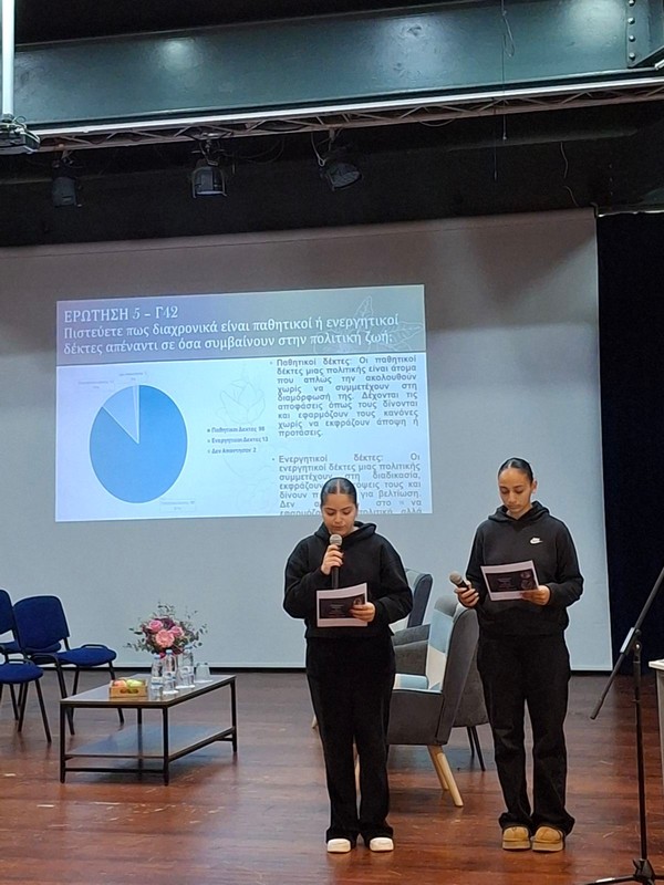 Την Παρασκευή 16 Ιανουαρίου 2026 πραγματοποιήθηκε στο Σχολείο μας μια αξιόλογη εκδήλωση με θέμα την ενεργό πολιτότητα, στην οποία ενεργά συμμετείχαν και παρακολούθησαν οι μαθητές/μαθήτριες των τμημάτων της Γ΄Λυκείου.